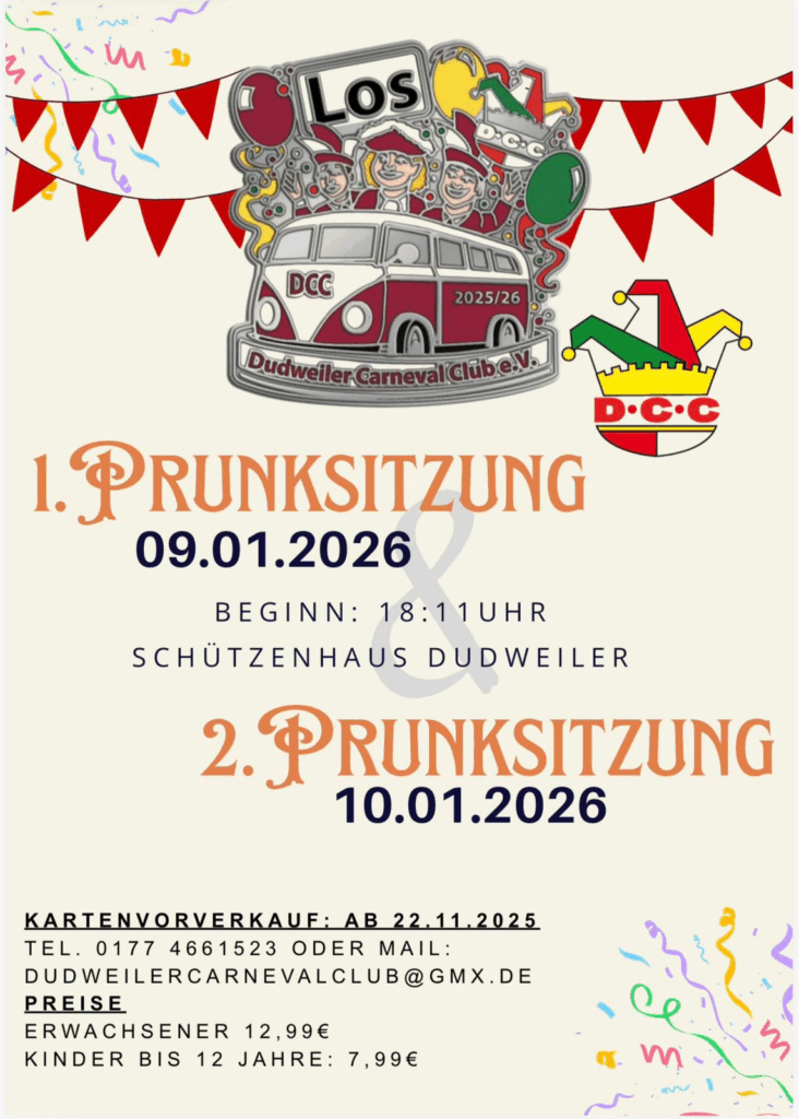Karten erhältlich am Ordensfest oder per Mail dudweilercarnevalclub@gmx.de