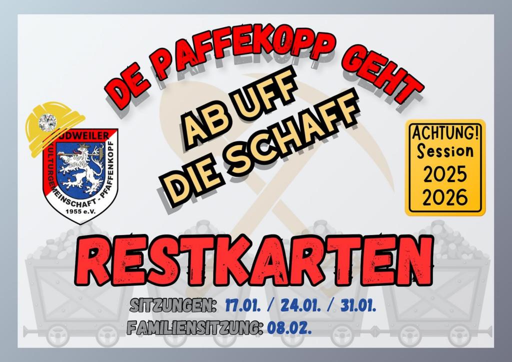 Die Sitzungen sind aber bereits ausverkauft. Falls jemand noch auf sein Glück hofft und eine Restkarte ergattern möchte, bitte an Jessica Heintz wenden: